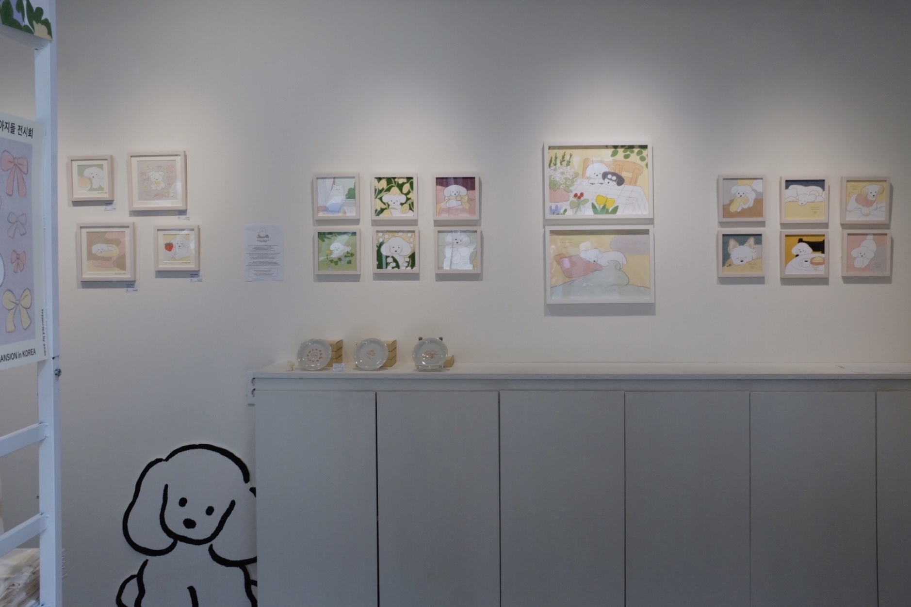 원화 작품과, 그 동안 작가님이 그려온 수많은 강아지 그림들 중,