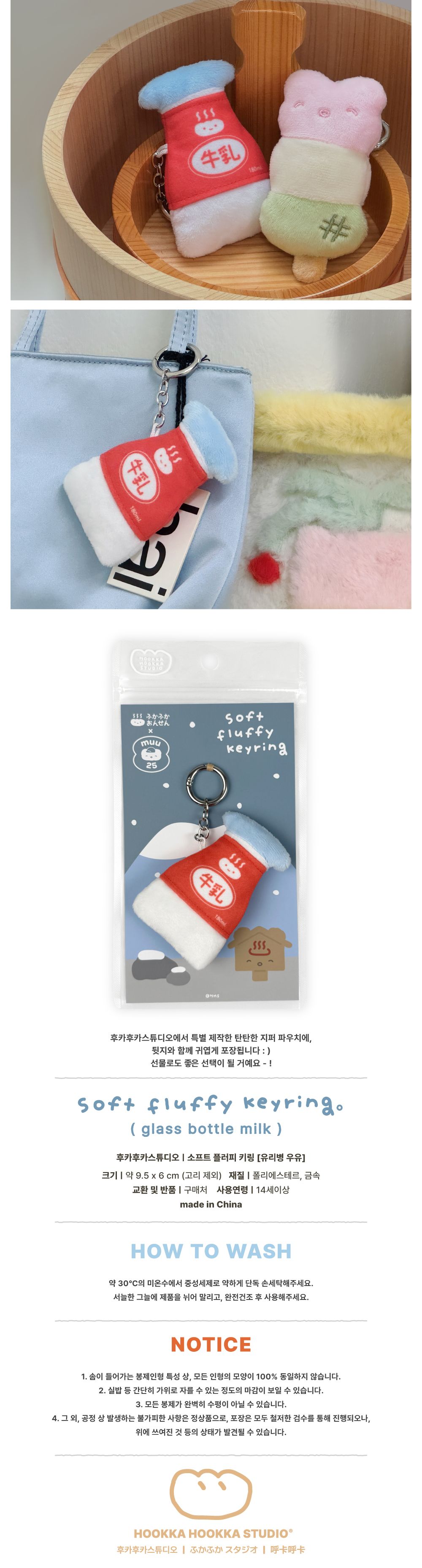 [후카후카 스튜디오] 소프트 플러피 키링 - 유리병 우유