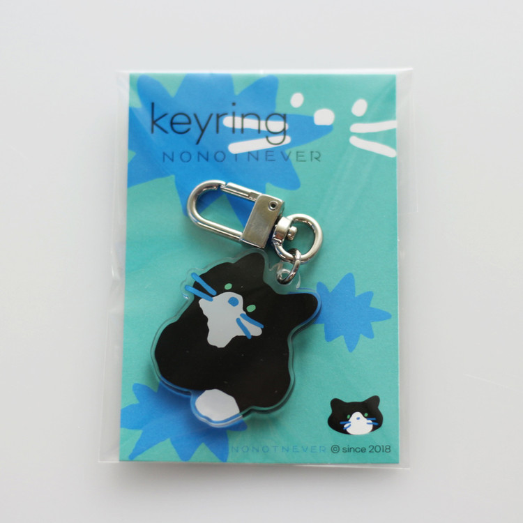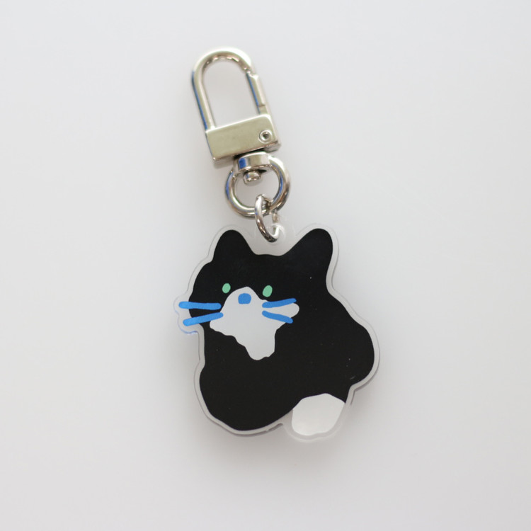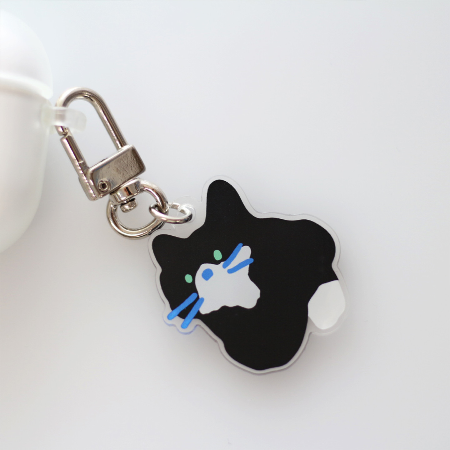 에메랄드 빛 눈동자와 파란수염을 가진 턱시도 고양이의 모습을 담은 키링 입니다.