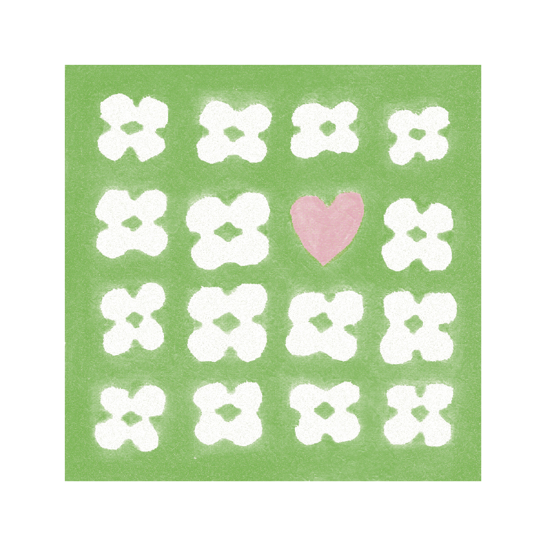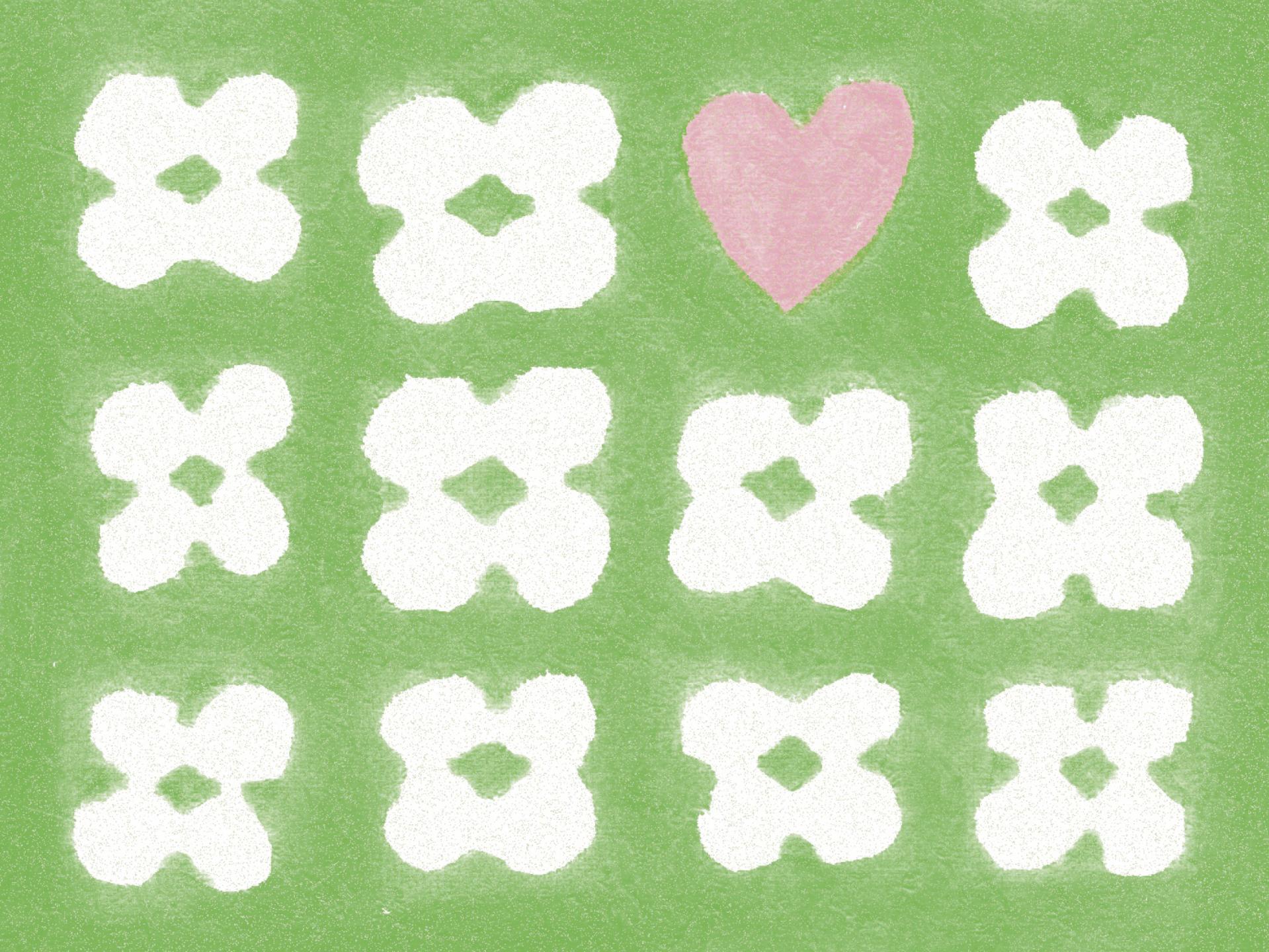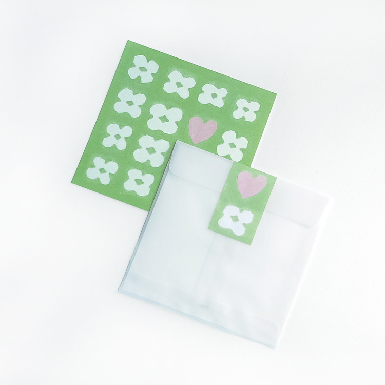 클로버로 가득 찬 편지 속 작은 하트가 돋보이는 엽서입니다.